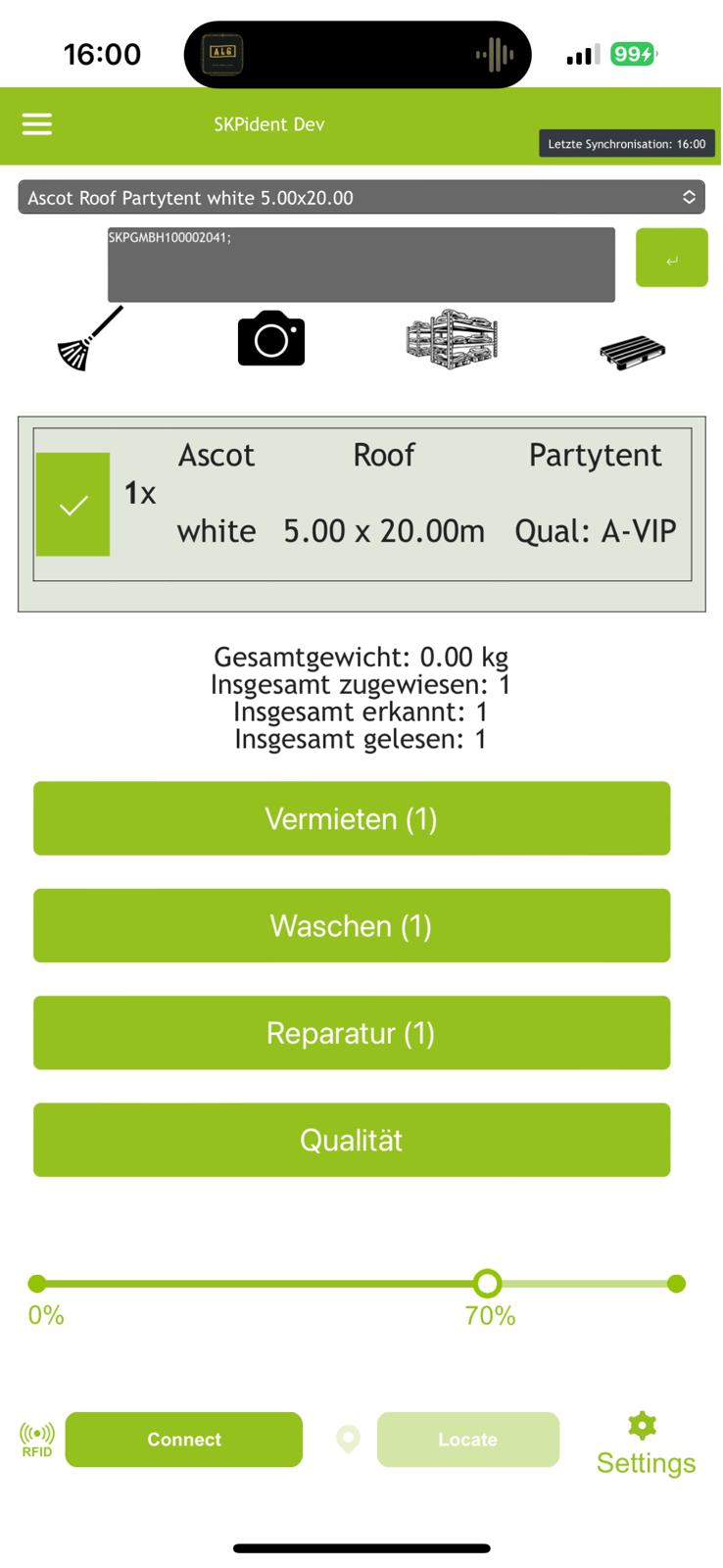 RFID Warehouse management & inventory tracking solution. Track tents, covers, linens, tables, chairs, cups & more in seconds thanks to touchless RFID detection. SKPident guarantees highest efficency and reliability.